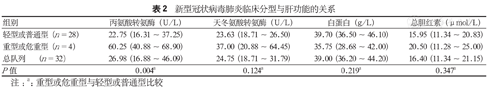 新型冠状病毒肺炎临床分型与肝功能的关系