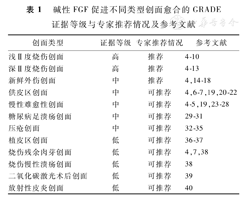 碱性FGF促进不同类型创面愈合的GRADE证据等级与专家推荐情况及参考文献