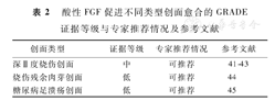 酸性FGF促进不同类型创面愈合的GRADE证据等级与专家推荐情况及参考文献