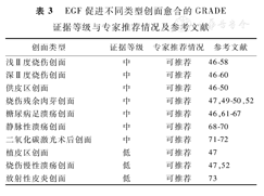 EGF促进不同类型创面愈合的GRADE证据等级与专家推荐情况及参考文献