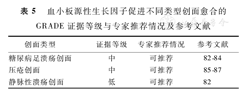 血小板源性生长因子促进不同类型创面愈合的GRADE证据等级与专家推荐情况及参考文献