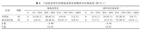 | 联合治疗组 | 45 | 0 | 13(28.9) | 17(37.8) | 15(33.3) | 8(17.8) | 26(57.8) | 7(15.6) | 4(8.9) | -4.65 | <0.01 |