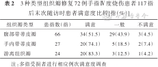 | 腹部带蒂皮瓣 | 66 | 30(45.5) | 21(31.8) | 10(15.2) | 5(7.6) |