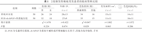 注:FUE为毛囊单位提取,rb-bFGF为重组牛碱性成纤维细胞生长因子