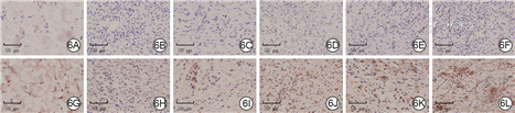 正常组大鼠正常皮肤组织中未见CD31和VEGF阳性表达。伤后15 d,载P311微球水凝胶组大鼠创面中CD31和VEGF阳性表达明显多于敷贴组、壳聚糖组、单纯水凝胶组、载单纯微球水凝胶组。见图6。