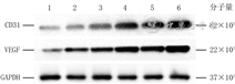 取1.3.3制作的切片,行免疫组织化学法检测,于400倍光学显微镜下观察CD31、VEGF的阳性表达(均为棕色)。一抗为兔源性CD31多克隆抗体(稀释比为1∶1 000)、兔源性VEGF多克隆抗体(稀释比为1∶200),二抗为HRP标记的山羊抗兔IgG多克隆抗体。