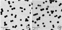 AuNP及IL-4-AuNP大小均匀,粒径分别为(13.0±2.1)、(13.9±2.5)nm,见图1。AuNP表面电位为(-45.8±3.2)mV,水合粒径为(14±3)nm;IL-4-AuNP表面电位为(-20.3±2.2)mV,水合粒径为(16±4)nm。