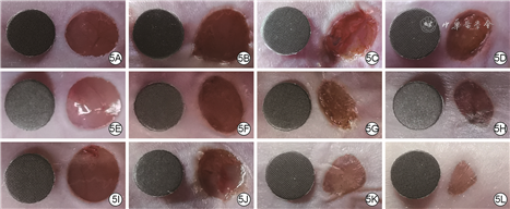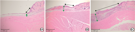 注:图中黑色双向箭头长度指示新生上皮长度,绿色双向箭头长度指示肉芽组织厚度