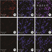 取1.7.1中制备的石蜡切片进行免疫荧光染色[23],其中一抗为兔抗小鼠Arg-1多克隆抗体,二抗为Alexa Fluor 594标记的山羊抗兔IgG多克隆抗体,稀释比均为1∶1 000。用含DAPI的抗荧光淬灭封片液封片,于200倍激光扫描共聚焦显微镜下观察Arg-1阳性细胞(红色)的数量。