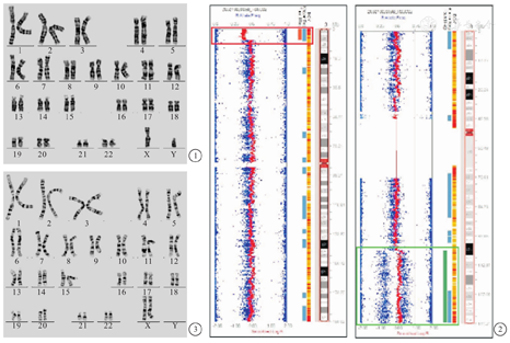 本例胎儿的3号衍生染色体是由其母亲的t(3;9)(p26.3;q31.1)所致,染色体平衡易位由于由于没有遗传物质的丢失,携带者表型通常正常。已知非同源染色体平衡携带者在配子形成过程中,生殖细胞在减数分裂时,通过同源染色体的配对、互换和分离,仅产生1种正常的配子和1种平衡易位型配子,其余16种将由于部分染色体单体或部分三体导致胎儿流产或胎儿畸形。本例由于同时行单核苷酸多态性微阵列检测,证实胎儿携带不平衡性遗传物质,有致病性,故孕妇选择了终止妊娠。
