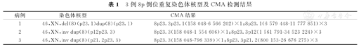 3例8p倒位重复染色体核型及CMA检测结果