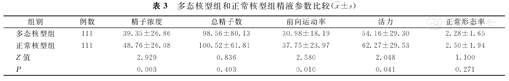 | 组别 | 例数 | 精子浓度 | 总精子数 | 前向运动率 | 活力 | 正常形态率 |