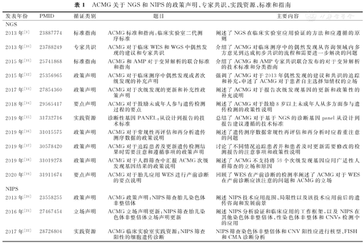 ACMG关于NGS和NIPS的政策声明、专家共识、实践资源、标准和指南