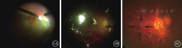 Duker等[1]根据OCT测量的裂孔最窄处直径将黄斑全层裂孔分为小、中、大。裂孔直径<250 μm为小裂孔,250 μm<裂孔直径≤400 μm为中裂孔,>400 μm为大裂孔。本例患者裂孔最窄处直径已超过1000 μm。对于裂孔直径>1000 μm的巨大黄斑裂孔仅行PPV和ILM剥除黄斑裂孔难以闭合[2,3]。ILM翻转以及游离ILM填充或晶状体囊膜填充虽然可有效治疗黄斑裂孔并降低发生视网膜脱离的风险[4,5,6,7],但本例患者黄斑裂孔最窄处已超过1000 μm,ILM难以做到有效填充,并且患者既往已行ILM剥除且晶状体较透明。因此,我们采用自体视网膜神经上皮层移植进行治疗,截取面积与黄斑裂孔大小基本吻合的视网膜神经上皮层组织填塞到黄斑裂孔中,在裂孔中形成相对封闭环境,通过RPE主动转运功能,将视网膜下液体转运至裂孔外,视网膜恢复贴复,促进裂孔闭合。所截取的视网膜神经上皮层,其内含有丰富的毛细血管网,相对于ILM和晶状体囊膜,可以更好地与周围视网膜组织愈合。从厚度上,所填充的视网膜神经上皮层与周围视网膜厚度接近,更有利于解剖结构的恢复。而ILM及晶状体囊膜在填充过程中,如果填塞过少,可能从裂孔中脱离;填塞过多,则会形成"山峦"样拱形结构,对手术后裂孔的愈合不如视网膜神经上皮层。患者手术后黄斑OCT检查提示,除颞侧有缝隙状视网膜菲薄区域外,其余各方位完美愈合,所移植的视网膜神经上皮层与原视网膜组织从神经纤维层到外核状层均吻合良好;但未发现正常椭圆体带组织层。因此,对于移植的视网膜神经上皮层是否具有一定的视功能尚需大样本研究和长期随访。