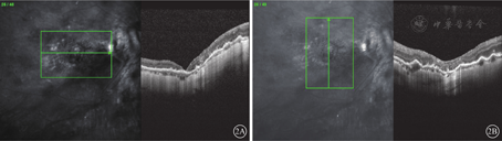 患者女,51岁。因右眼被木棍击伤后视力下降1个月余来我院眼科就诊。既往有高血压病史10年。眼部检查:右眼视力手动/眼前,左眼视力1.0。角膜透明,前房Tyn(++),晶状体密度高;玻璃体腔少量积血;全视网膜脱离,较僵硬,赤道部10点时钟位可见2 DD大小马蹄孔。左眼眼前节及眼底检查未见明显异常。诊断:右眼视网膜脱离、钝挫伤。行右眼玻璃体切割手术(PPV),手术中剥除黄斑区内界膜(ILM),周边张力较大视网膜予以松弛性切开。手术后3个月复查发现黄斑巨大裂孔伴视网膜脱离;因黄斑区视网膜脱离较高,未行黄斑OCT检查。再次行PPV联合自体视网膜神经上皮层移植手术。手术方法:曲安奈德染色剥除玻璃体后皮质,吲哚青绿(ICG)染色撕除残余增生膜及ILM,剥离周边可见的视网膜表面及下方增生条索,张力较大处视网膜予以切开。平镜下对比裂孔大小及形状(图1A);于颞下方8点时钟位周边部视网膜,避开视网膜血管区域,ICG染色,勾勒出与黄斑裂孔大小接近的视网膜神经上皮层组织,垂直剪取该视网膜组织(图1B)并移植到黄斑裂孔处,填充硅油;取出视网膜神经上皮层处予以激光光凝,植入视网膜神经上皮层裂孔处不予激光光凝封闭。手术后保持俯卧位1个月。手术后3个月行硅油取出手术。手术前黄斑OCT检查,视网膜复位良好,黄斑裂孔最窄处直径1213 μm,最宽处直径1519 μm;手术中见视网膜在位。硅油取出手术后1周复查,右眼视力数指/眼前;眼压15 mmHg(1 mmHg=0.133 kPa);晶状体轻度混浊。眼底彩色照相,视网膜复位良好,隐约可见移植视网膜形态与原裂孔基本吻合,可见椭圆形裂孔轮廓(图1C)。黄斑OCT检查,颞侧移植视网膜神经上皮层与原视网膜连接处菲薄,其他方位各层吻合良好,但未见椭圆体及嵌合体带(图2)。因患者自身原因未行眼电生理检查。