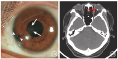 根据本例患者既往史、眼部查体和辅助检查可知,患者2年前左眼曾受穿通伤,异物穿通虹膜及晶状体致虹膜缺损及晶状体局部混浊,最终嵌顿至视盘旁。2年后因治疗需要行MRI检查,在磁场作用下发生移动损伤视盘旁血管从而造成玻璃体积血及突发视力下降。这提醒我们,在行MRI检查时,应详细询问患者既往史,尤其是对于潜在高危球内磁性异物存留者,可首选CT等其他影像手段;如必须行MRI检查,则需首先行X线片、CT等检查排除磁性异物的可能[4]。对于眼科医生,首次接诊眼外伤患者时应该仔细排查球内异物。对于陈旧眼外伤患者裂隙灯显微镜由前向后依次检查是否存在穿通伤的陈旧瘢痕等,也能够帮助我们筛选出高危患者,从而提高警惕。