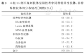 本组95例筛查结果为不规则抗体呈阳性者中,同种特异性抗体为66例,其中Rh血型系统为35例,Lewis血型系统为10例,MNS血型系统为21例;非特异性抗体为29例,其中冷抗体为10例,自身抗体为15例,药物抗体为4例,见表3。