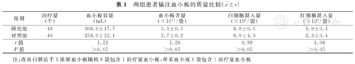 两组患者分别于输注前,输注后第1及24小时空腹抽取肘静脉2 mL,检测血小板计数,再计算校正血小板计数增加值(corrected count increment,CCI),即CCI=(输注后血小板计数–输注前血小板计数)(×109/L)×体表面积(m2)/输注血小板数(×1011)。若血小板输注后第1小时,CCI<7.5,输注后第24小时,CCI<4.5,则判断为输注无效[3,4,5,6]。