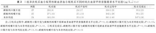 3组多次机采血小板男性献血者血小板机采不同时间点血清甲状旁腺激素水平比较(pg/L,