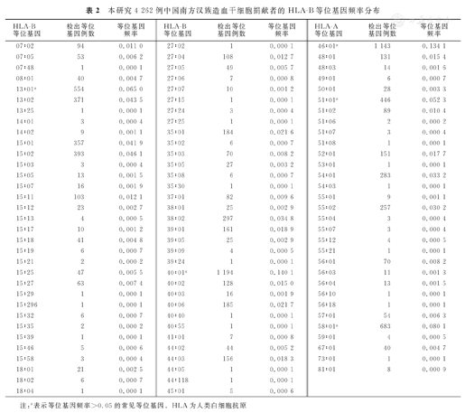 本研究4 262例中国南方汉族造血干细胞捐献者的HLA-B等位基因频率分布