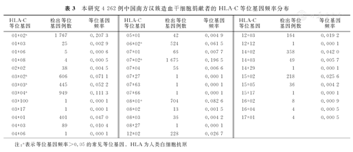 本研究4 262例中国南方汉族造血干细胞捐献者的HLA-C等位基因频率分布