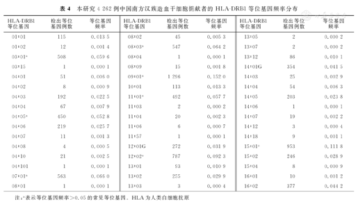 本研究4 262例中国南方汉族造血干细胞捐献者的HLA-DRB1等位基因频率分布