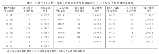 本研究4 262例中国南方汉族造血干细胞捐献者的HLA-DQB1等位基因频率分布