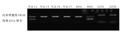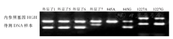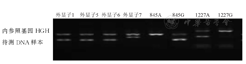 本研究116例RhD初筛结果呈阴性献血者RHD基因分型结果显示,RHD基因外显子全部缺失为77例(66.4%),RHD-CE(2-9)-D型为13例(11.2%),弱D15型为3例(2.6%),DEL RHD1227A纯合型为19例(16.4%),DEL RHD1227A杂合型为4例(3.5%)。RHD基因外显子全部缺失、RHD-CE(2-9)-D型、弱D15型、DEL RHD1227A纯和型、DEL RHD1227A杂合型献血者DNA样本的RHD基因分型电泳图,见图1,图2,图3,图4,图5。
