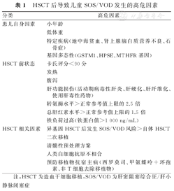 HSCT后导致儿童SOS/VOD发生的高危因素