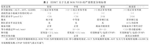 EBMT关于儿童SOS/VOD的严重程度分级标准