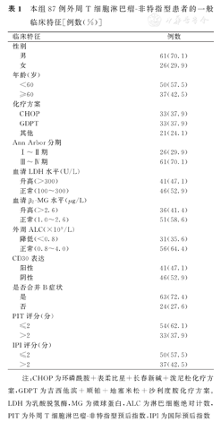 本组87例外周T细胞淋巴瘤-非特指型患者的一般临床特征[例数(%)]