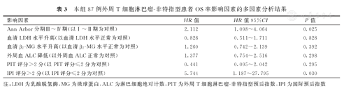 本组87例外周T细胞淋巴瘤-非特指型患者OS率影响因素的多因素分析结果