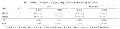| 组别 | 例数 | PSQI | 癌因性疲乏 | ||