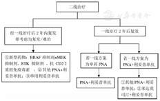 若HCL患者接受一线治疗后2年之内出现早期复发,则考虑为复发/难治性HCL,其应首选新型药物治疗。目前,复发/难治性HCL患者可选择的新型药物包括BRAF抑制剂、BTK抑制剂和抗CD22重组免疫毒素等。