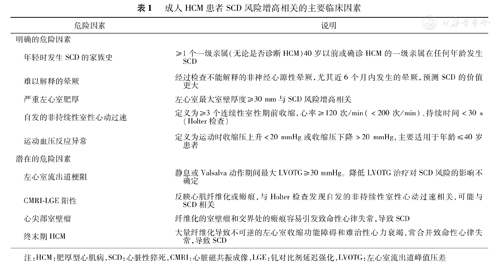 成人HCM患者SCD风险增高相关的主要临床因素