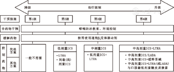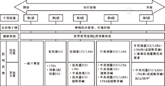 注:ICS:吸入性糖皮质激素;LTRA:白三烯受体拮抗剂;LABA:长效β2受体激动剂;ICS/LABA:吸入性糖皮质激素与长效β2受体激动剂联合制剂ICS:inhaled corticosteroids;LTRA:leukotriene receptor antagonist;LABA:long-acting beta2-agonist;ICS/LABA:inhaled corticosteroids and long-acting beta2-agonist combination