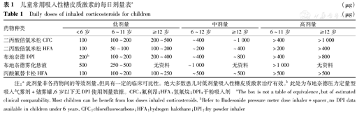 儿童常用吸入性糖皮质激素的每日剂量表a (μg)