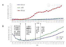始发于2019年底的武汉新型冠状病毒感染疫情,包括从该疫情的披露到疫情的处置,引发了全国乃至全世界的广泛关注。一场严峻的公共卫生危机无情的考验着我国公共卫生体系的响应及应急处置能力。截至笔者投稿为止,该疫情已得到了初步的控制,2月10日至2月20日的11天内已经有8天新增确诊病例数较之前一天均有下降。正当我国疫情趋向好转,新型冠状病毒感染疫情全球蔓延,截至3月19日,全球确诊病例突破20万,美国累计确诊人数已超过9000例,欧洲意大利、德国、法国疫情堪忧。疫情产生的影响取决于感染者人数、病原体的传染性以及临床严重程度的范围[1]。弄清这三个关键点对于准确判断疫情的进展阶段,从而有效配置医疗救护资源、实施联防联控,评估防控措施效果,避免医疗资源挤兑、医疗资源浪费和社会恐慌、减少经济损失,具有至关重要的作用。本文主要对全国疫情初期(1月20日至2月20日)的湖北省及省外新型冠状病毒肺炎确诊患者的治愈及死亡趋势进行了回顾性的流行病学描述性研究,以增强对该疾病流行特征[2,3]的全面的科学认识,寻找有效的评估指标,为评估新型冠状病毒感染疫情的防控措施效果及投入产出提供切实的依据。由于当前新型冠状病毒肺炎(Coronavirus Disease 2019,COVID-19)的治疗尚无特效药,也无可用于临床的疫苗。因此当前COVID-19患者的治愈及死亡趋势很大程度上反映的是早发现、早诊断、早治疗的前期流行病学隔离控制效果。所以我们同时分析了每日新增确诊人数的变化比例,用于佐证COVID-19患者治愈及死亡趋势的分析结论。