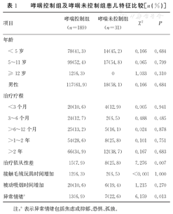 | 项目 | 哮喘控制组(n=189) | 哮喘未控制组(n=31) | χ2 | P | |
