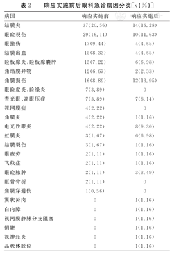 | 角结膜异物 | 12(6.67) | 2(2.33) |
