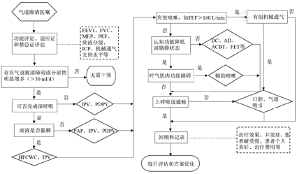 推荐意见4:对患者实施气道廓清治疗前均需进行呼吸功能和排痰障碍原因的评估,以制定个体化的气道廓清方案。