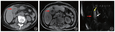 该患者术前高热(体温最高达39 ℃)、严重黄疸(总胆红素高达565.57 μmol/L)、CA19-9很高(8454 U/mL)、胸部CT(双肺支气管炎、下叶肺炎、双侧胸腔积液),既要与COVID-19严格鉴别,又要明确胆总管梗阻原因。患者入院后的MRCP检查,在胆道良恶性梗阻鉴别上起到了关键作用。