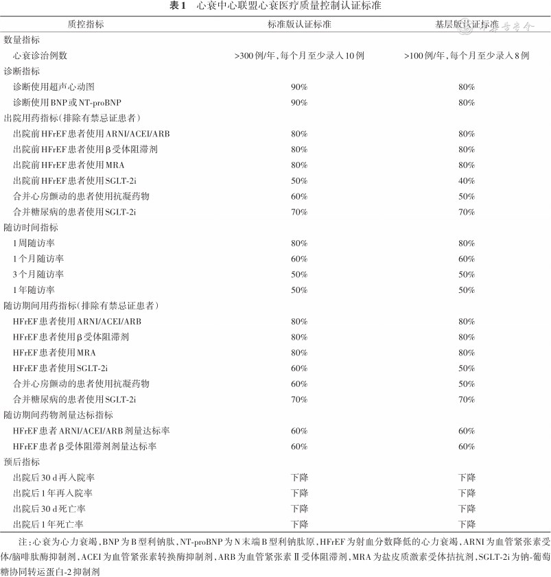 完善医疗质量评价并持续改进是实现长期管理、不断优化诊疗,进而减少不良预后的关键环节。心衰中心医疗质量控制指标是一套完整的评价系统,涉及心衰的诊断、治疗和转归等多方面,旨在通过定期的关键指标评估,引导临床医师持续关注心衰标准化、规范化诊疗,解决诊疗连续性问题,不断缩小临床实践与指南的差距,最终达到改善心衰患者预后,降低疾病负担的目的。