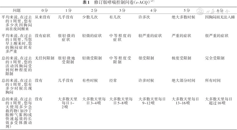 修订版哮喘控制问卷(r-ACQ)[47]