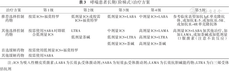 哮喘患者长期(阶梯式)治疗方案