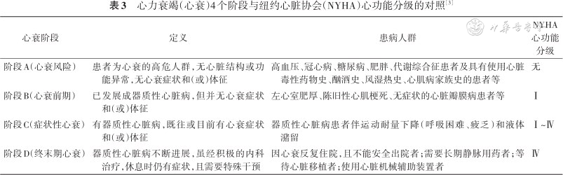 心力衰竭(心衰)4个阶段与纽约心脏协会(NYHA)心功能分级的对照[3]