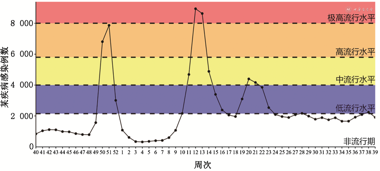 15. 流行强度(epidemic intensity):是指在特定时间段内,传染病在特定人群中的发病或感染水平的高低。流行强度可以通过多种指标来衡量,如每周新增病例数、每周特定病原检测阳性率等[15]。