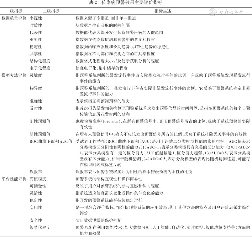 传染病预警效果主要评价指标
